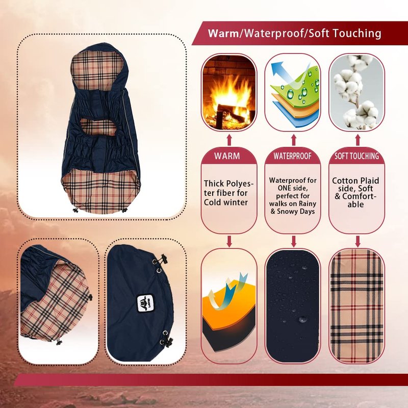 - 【Wide Application】: Waterproof dog hooded lined is suitable for small, medium, large dogs, chihuahua, labrador, bulldog, etc., suitable for indoor or outdoor free activities.