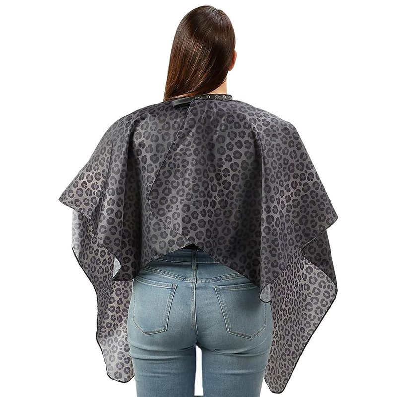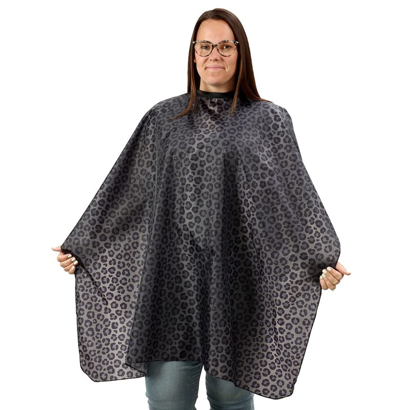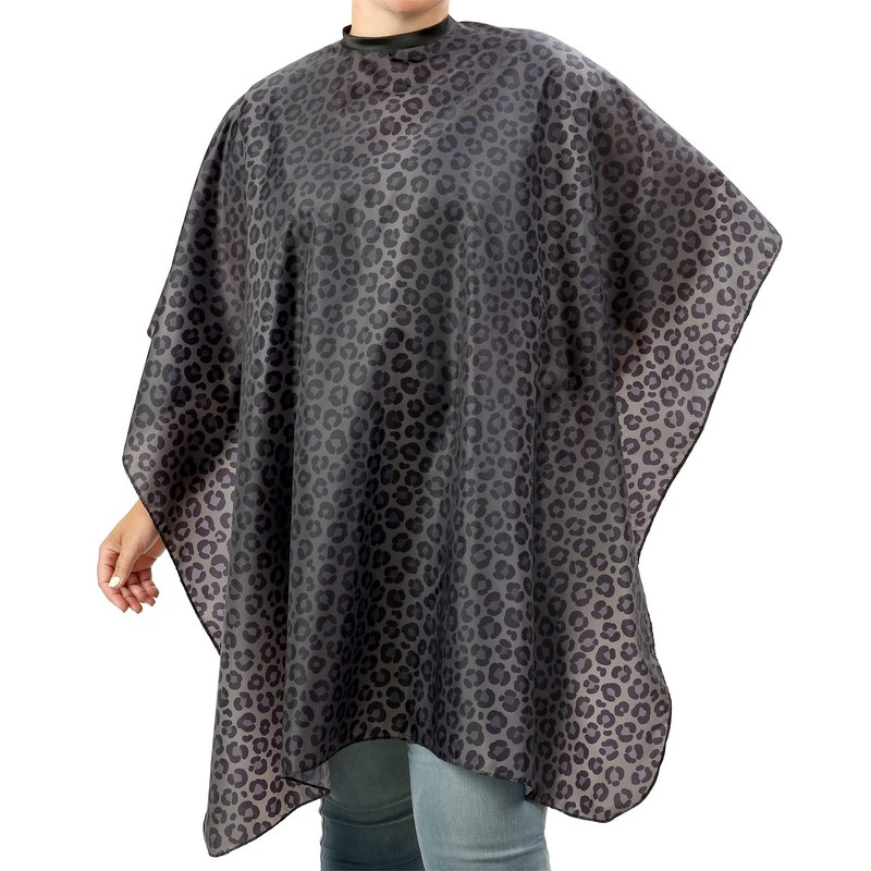 Black leopard salon hair cutting cape is made from lightweight, breathable polyester and is water, chemical and stain resistant featuring an original design from Plum Hill. Hair falls away from our antistatic fabric making cleanup a breeze. The five stainless-steel snaps on the neck easily adjust from 11" up to 20" to fit kids and adults. Perfectly sized at 44 inches wide by 56 inches long, our salon cape provides excellent protection for your guests during shampoo, cutting, comb out and styling. Easy-care machine washable to last for years. Introducing our Exclusive Salon Capes and Stylish Smocks Collection! We understand the importance of quality and style in the beauty industry. That's why we've curated a range of salon capes, shampoo capes, salon smocks for clients, and hairstylist capes that cater to the needs of both professionals and clients alike. Hair Salon Capes - When it comes to keeping your clients comfortable and dry, our hair salon capes are the ultimate choice. Expertly designed and crafted, these capes offer exceptional durability and style, ensuring a top-notch experience for both stylist and client. Shampoo Capes for Hair Stylist: Elevate your shampooing sessions with our specialized shampoo capes. These capes are waterproof and feature a smart design to prevent drips and splashes, allowing you to provide a premium service without any wardrobe mishaps. Hair Cutting Capes: Our hair cutting capes are a symbol of professionalism. With convenient snaps, they stay securely in place during haircuts, giving you the freedom to work your magic without disruptions. These capes are a must-have for every hairstylist. Salon Smocks for Clients: We value your clients' comfort. Our salon smocks are tailored with their needs in mind, ensuring they remain cozy and protected during their salon visit, whether it's for a cut, style, or shampoo. Hairdressing Cape: For a true touch of sophistication, explore our hairdressing cape, ideal for stylists who demand both style and functionality. This cape takes your salon look to the next level. Stylist Cape: Our stylist cape is a versatile and fashionable addition to your professional wardrobe. With this cape, you can showcase your individual style while delivering top-quality service. Salon Capes for Hair Stylist Waterproof: Rain or shine, our waterproof salon capes offer consistent protection. They repel moisture, ensuring your clients remain comfortable throughout their appointment.