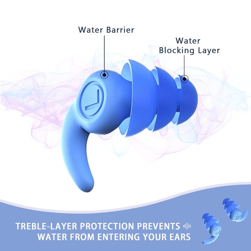 Waterproof Swimming Ear Plugs for Adults, 3 Pairs Reusable Silicone Swimmer Earplugs, Ear Protection for Showering Swimming Bathing Surfing and Other Water Sports