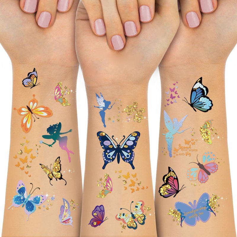 Waterproof Temporary Tattoos - 92pcs Butterfly Groovy Fake Tattoo for Kids, Stickers Party Favor Supplies Make Up Decoration, Festival Arts and Crafts Accessories Kits for Women Girls
