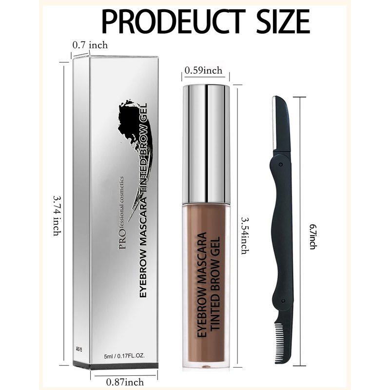 - TINTED BROW GEL - The upgraded tinted brow gel contains high-quality man-made fiber, Silicone Resin, and Vitamin E. Nourish eyebrows and solid color with luster, at the same time that easy to shapes, fills, holds your brows in place. The eyebrow gel fills in sparse areas to increase fullness and thickness for brows and make them look natural and healthy