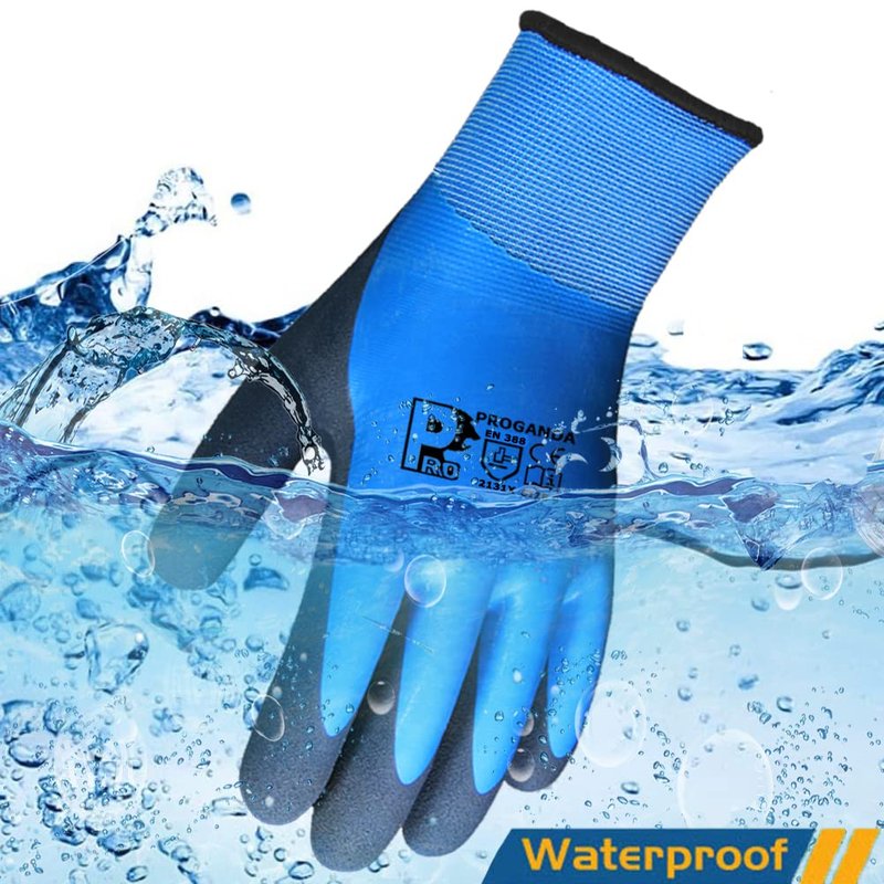 - WATERPROOF: Fully blue latex dipped Waterproof coating prevents fumes or liquids coming into direct contact with the palm, keep your hands dry, clean when you rinse the gloves under water after working