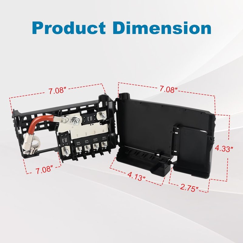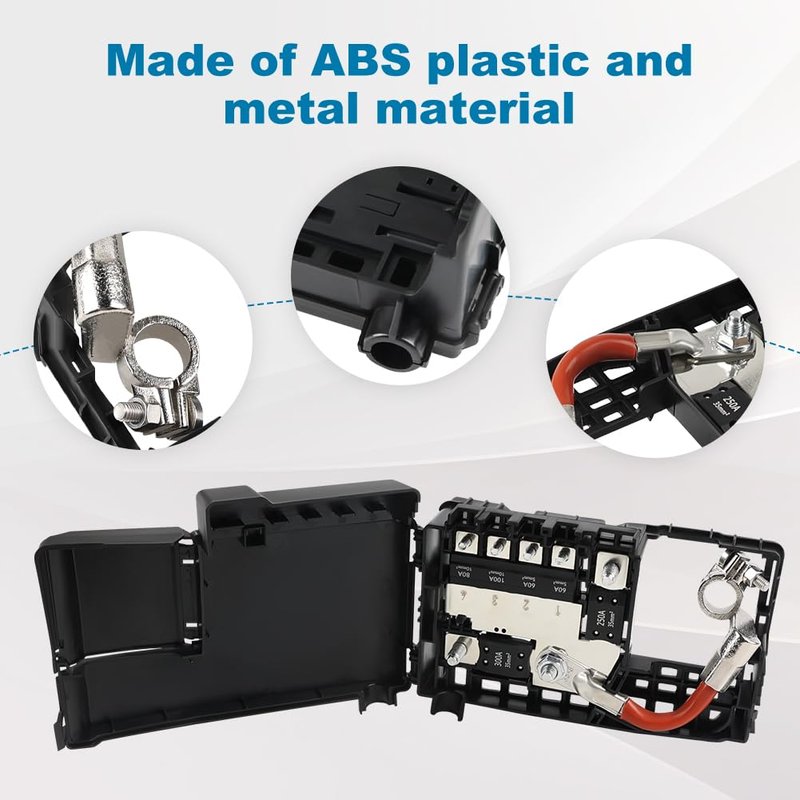 - 5. Fuse Block Battery terminal with cover: The product comes with a battery terminal cover, which helps to protect the battery terminals from dust, debris, etc., thereby maintaining the cleanliness and reliability of the battery connection. This design helps to extend the battery's lifespan
