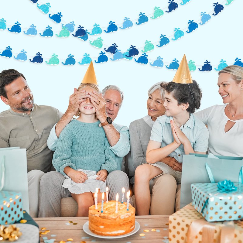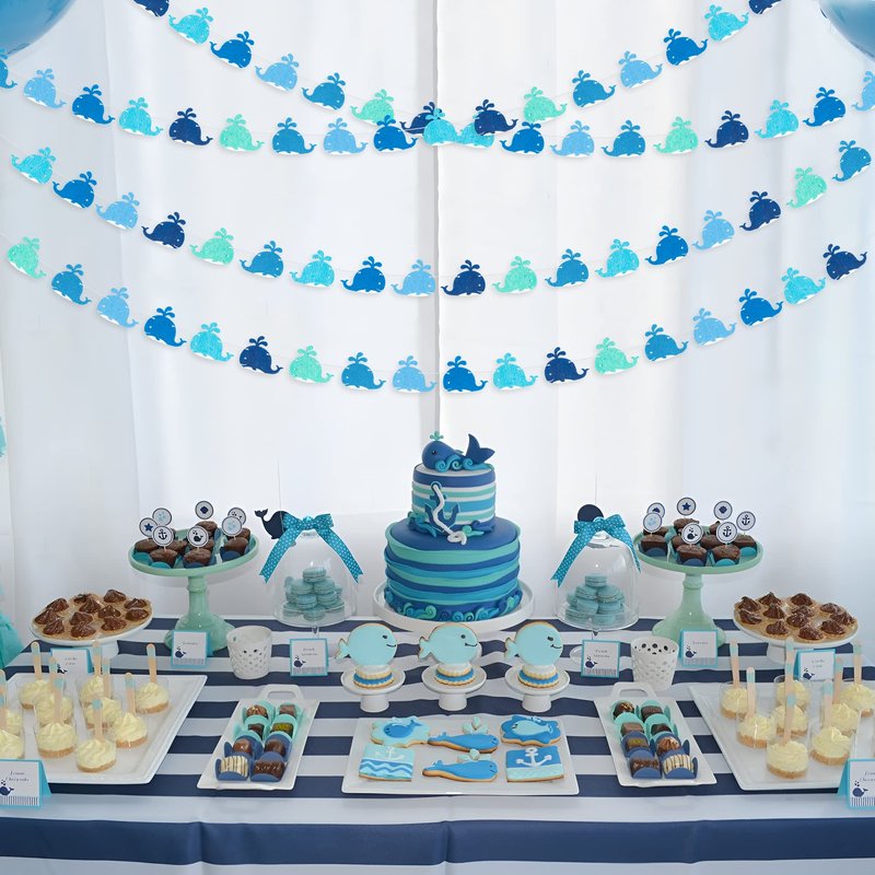 - Ocean Theme Garland: These 4 whales will light up your party, the eye-catching color will become the focal point of the party. It can be used as a nice photo background wall, make your party more wonderful!