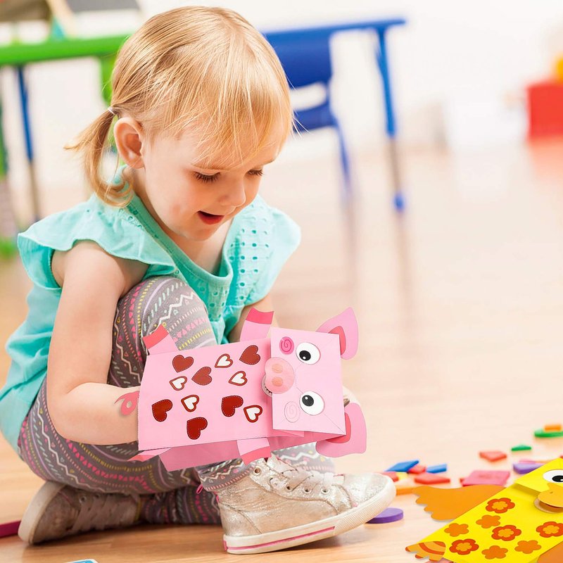 - WHAT YOU WILL GET - Package comes with 9 pcs colorful paper bags, 9 pcs animal craft cards, 9 pcs stickers and 1 roll of double-sided tape, totally can combined with 9 hand puppets.