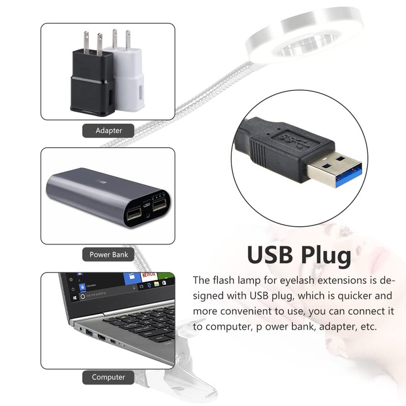 - 【USB Plug】The flash lamp for eyelash extensions is designed with USB plug, which is quicker and more convenient to use, you can connect it to computer, power bank, adapter, etc.