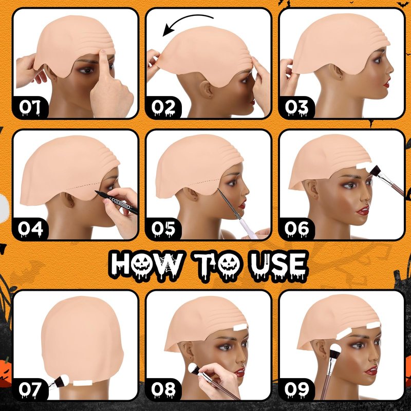 - Easy to Put into Use: to use these Halloween bald caps, simply use the mesh wig cap to fix your existing hair and then use the stretchable rubber latex cap to fit it on your head; You can apply liquid latex to the edge of the hat and paste it to your skin; Then use cosmetics to make it the same color as your skin
