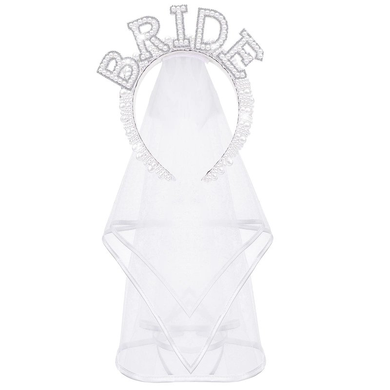 - Impressive Look: our veils for brides with pearly white [BRIDE] inscription is at the top of the pearl headband, and each item is tailored to the bride, making it a good accessory for the wedding day, which will leave a deep impression to the bride and bachelorette and make you look more charming