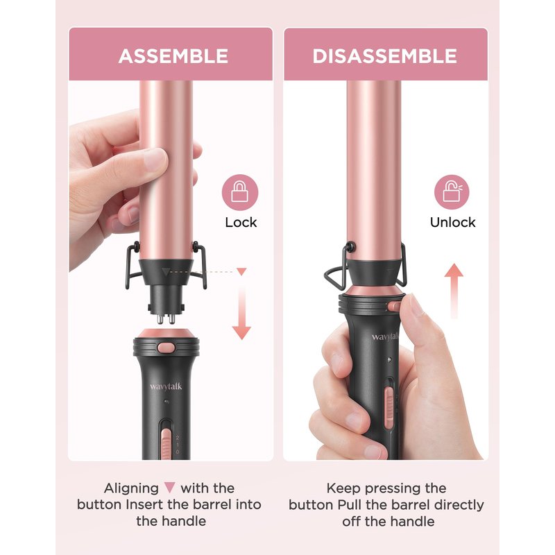 - Easy to Interchange barrels: Quick to install design makes it easy to change the barrel.The handle of our curling wand is made of heat-resistant rubber material, and designed an insulation tip on curling wand & a insulated glove to protect your hand!