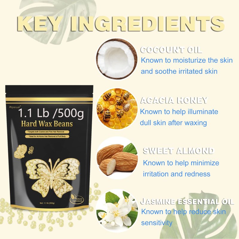 - 【Sensitive Skin Waxing Beads】: Formulated with natural ingredients, Auperwel wax beads for hair removal are perfect for sensitive skin. Ideal for Brazilian, armpit, leg, face and back waxing, these gentle and effective hard wax beads grip hair firmly from the root without side effects, leaving your skin smooth and hairless.