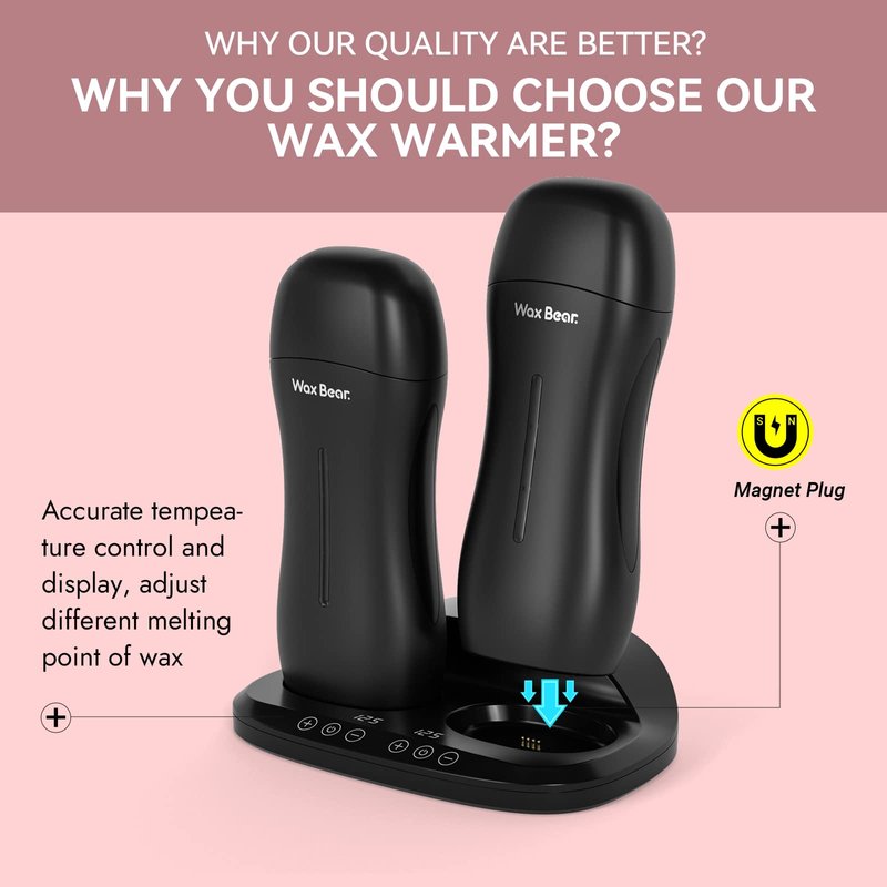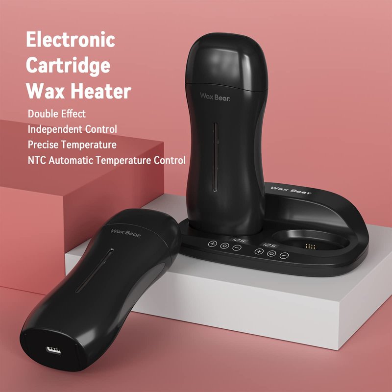 Wax Bear Roll On Wax Warmer, Double Roller Wax Heater for Soft Wax Cartridge with Magnetic Heater Base for Hair Removal,Perfect for Waxing at home or Waxing Salons. (Black)