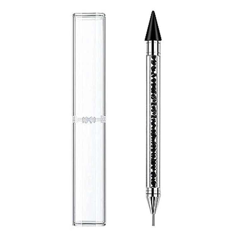 Package: 1 pcs Rhinestone Picker (Clear Box package) Color: Black Material: Acrylic, Stainless Steel, Wax Wax pen tip: for picking small nail rhinestones, gemstones and other nail decorative beads and placing them on your nails to make your nails look better. Stainless steel tip: used to press the diamonds after you put them on your nails until the nail glue dries. Ergonomic acrylic handle decorated with clear diamonds, easy to hold and operate Pairs perfectly with rhinestones, crystals and other 3d decorations. Can be used to get ss3-ss40 crystals