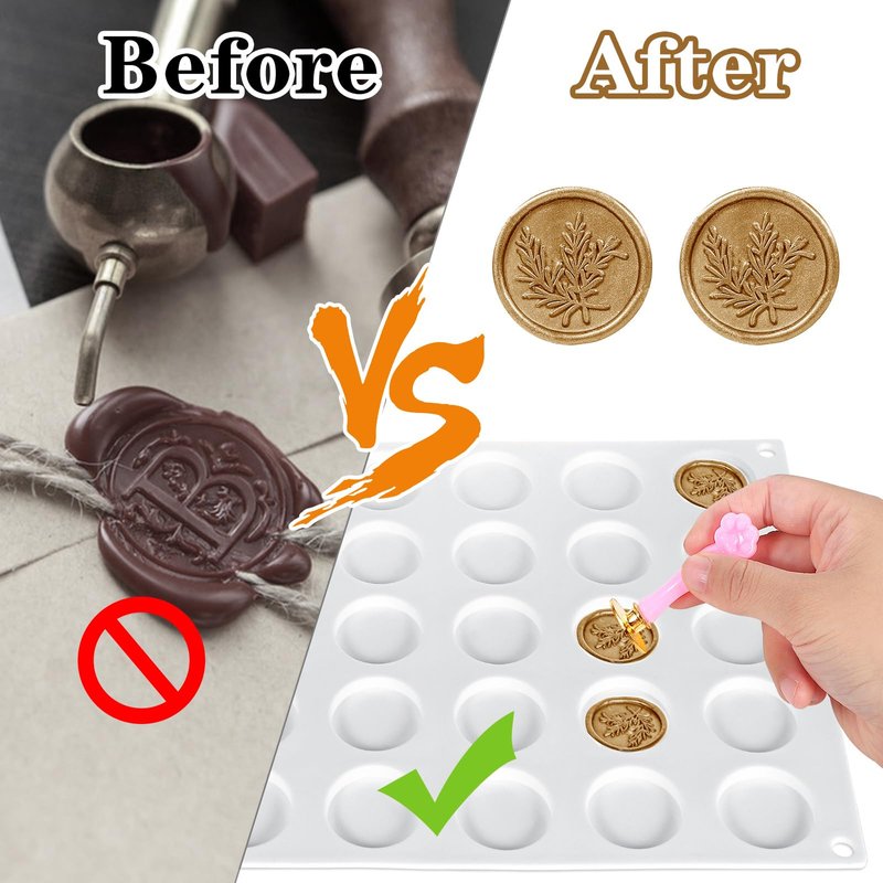 - 【Tips for Using】: First heat the wax, pour it into the hole of the silicone pad, and then press the wax seal into shape. After forming, remove it and stick it on the envelope with a wax seal sticker. It allows you to produce a large number of wax seal products at one time.