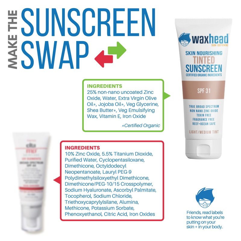 Best Vegan Sunscreen for Face. Rated 1 Tinted Sunscreen by Environmental Working Group. Easy to dot, spread and rub on face. See exactly where you’re applying it. Goes on smoothly + Non-greasy + Hypoallergenic, Good for sunscreen pregnancy. Use as a daily tinted moisturizer. True broad spectrum from 25% non-nano uncoated zinc oxide. Zinc oxide sunscreen face. Completely free of toxins + petrochemicals (NO oxybenzone) Baby safe + Reef safe + Biodegradable + Cruelty free. Made with only certified organic + mineral ingredients. Face sunscreen with zinc oxide. Made in small batches, quantities are limited Uncommonly Safe Mineral Face Sunscreen and tinted facial sunscreen. Developed by a holistic biochemist, our mineral sunscreen tinted zinc oxide sunscreens are purely beneficial for humans and our planet, using only certified organic and superior quality tinted mineral sunscreen for face ingredients, our pregnancy sunscreen, tinted facial sunscreens are natural, reef safe, kid safe, baby safe, cruelty free, biodegradable and completely free of toxins, allergens and petrochemicals (like oxybenzone). This tinted sunscreen mineral is proudly made in the USA. Uncommonly Effective zinc oxide mineral sunscreen. Thicker than common tinted SPF lotions, a little goes a long way and delivers the longest lasting, most comprehensive UV spectrum protection available and yet perfect for sensitive skin and eczema. Why Waxhead? We are thoughtfully committed to health, sustainable practices, the environment and sunscreen biodegradable. We are an uncommon skincare company driven by holistic science and grounded in authenticity and sustainability. Blending modern science + old school sense, we design eco-friendly tools to help humans play in the sun without worrying about skin cancer or toxins.