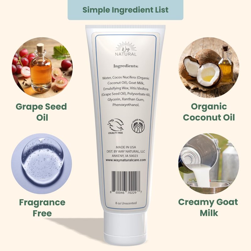 Way Natural Real Goat Milk Lotion, Unscented - Soothing, Creamy, Dry Skin Relief - Coconut & Grapeseed Oils - Goat Milk Hand Cream/Body Lotion - 8oz Tube