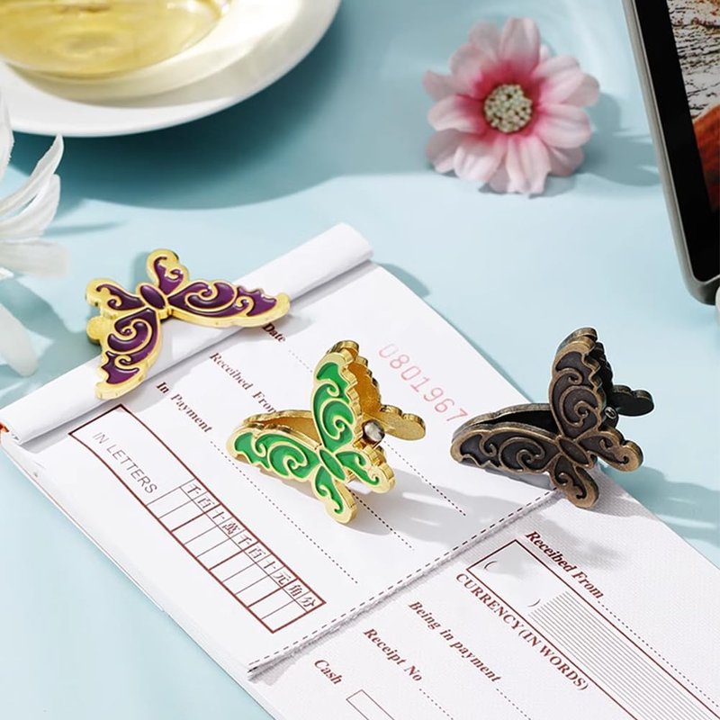 - MULTI-FUNCTIONAL - Use this metal notebook holder to organize cluttered files, notebooks, invoices, bills, recipes, test papers, posters, postcards, photos, maps, drawings, price tags, color coding, and even grocery bags without getting in your way , making your storage more fun and efficient. A decorative addition to any living or work area, the butterfly paper binder clip will add a vintage vibe to your space
