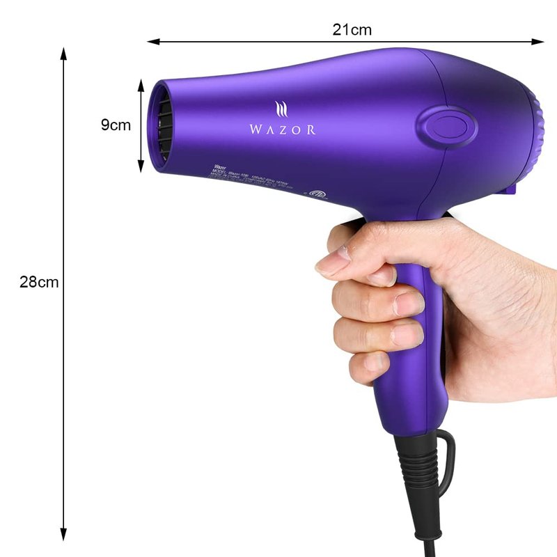 Wazor Lightweight Hair Dryer with Diffuser, Negative Ionic Professional 1875W Blow Dryer with 2 Speed 3 Heat Settings Cool Shot Purple