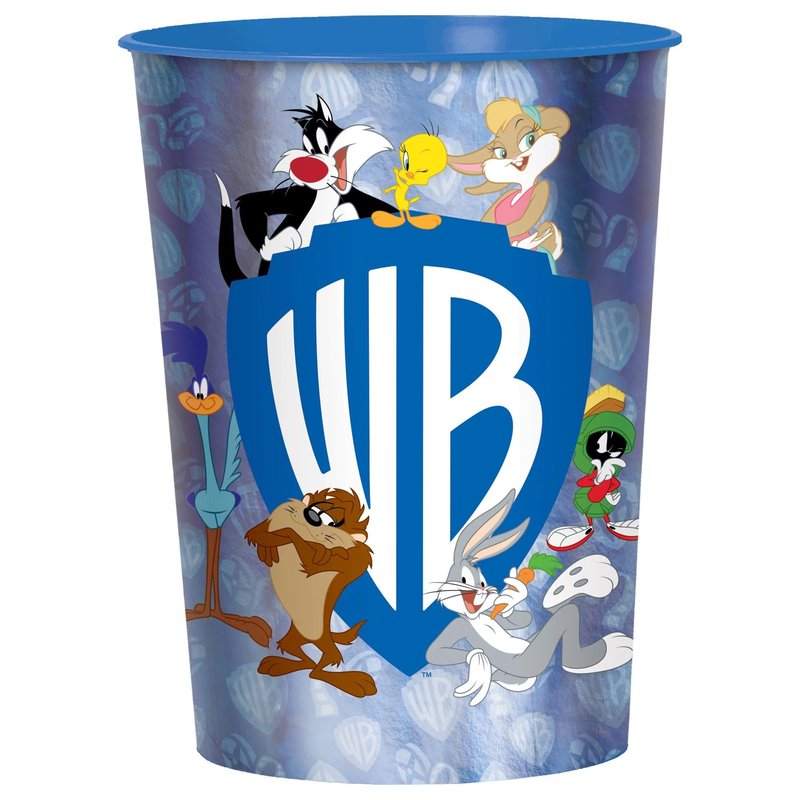 WB 100th Anniversary Looney Tunes Birthday Party Supplies Bundle includes 12 Metallic Plastic Reusable Cups 16oz and 1 Dinosaur Sticker Sheet