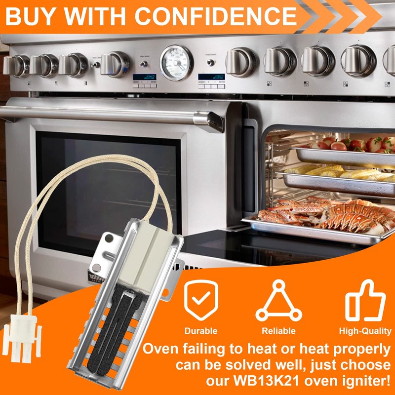 - FUNCTIONS: The WB13K21 oven igniter fit for ge will help repair ovens that are not producing heat due to a broken-down igniter. If your oven can not heat or abnormal heating, you need change your old oven igniter to extend service life and maintain the efficiency of oven.