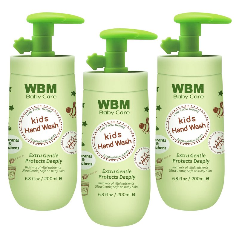 - WBM Care baby hand soap contains the natural plant-based, non-irritating ingredients such as natural honey, wheat germ oil and organic olive oil that calms, nourishes and smooths.