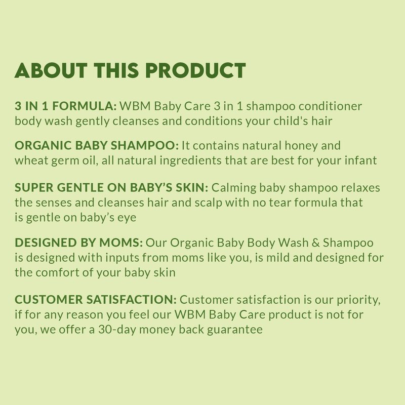 - WBM Baby Care body wash gently cleanses and conditions your child's skin.