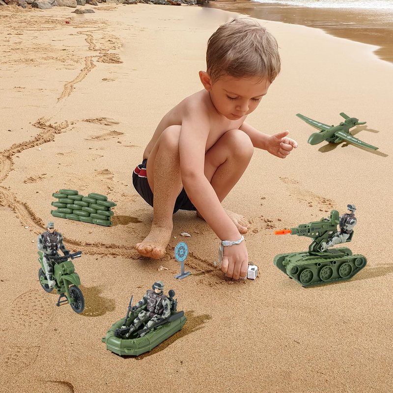 - Military Playset Toys: This plastic army men sets contains tank, drone and boat and other model, each one is better-designed to combine together with endless fun. If your kids are a military fan, the tank toy will be their desirable gift for Christmas and Birthday