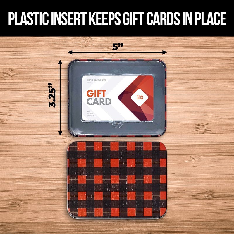 - Durable - Protect Your Gift Card With Our Sturdy Metal Tin Holder Craftsmanship. Each Tin Includes a Plastic Inner Holder to Maintain Gift Cards Securely in Place