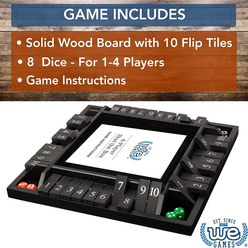 - The original 4 Player Shut the Box TM dice game that set the bar for all other versions. Enjoyed by 2 or more players in pubs across the world as well as in math classrooms to teach addition and probability.