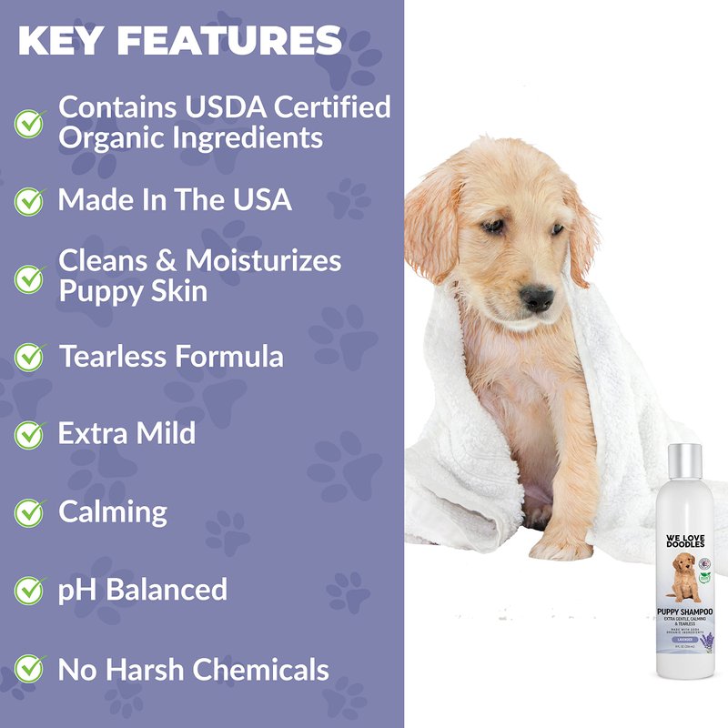 - ✅ CALMING LAVENDER SCENT: Our shampoo for puppies is infused with USDA Certified Organic lavender oil which calms your puppy and leaves them smelling fresh.