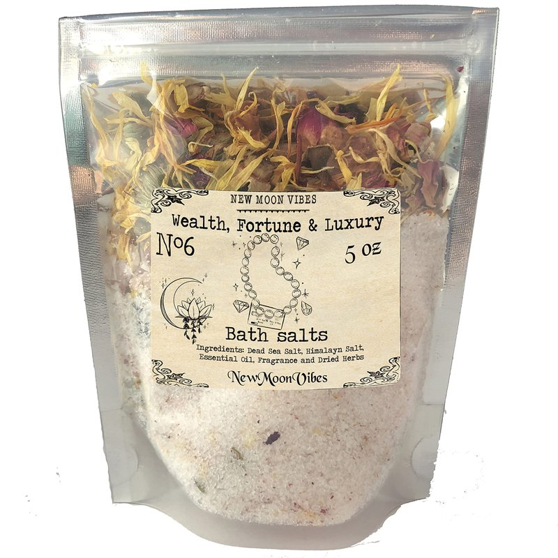 Wealth and Luxury Essential Oils Herbal Spell Ritual Bath Salts with Real Herbs Botanicals Infused Manifest Luck Promotion Riches Job Raise Abundance Income Money Magnet Prosperity