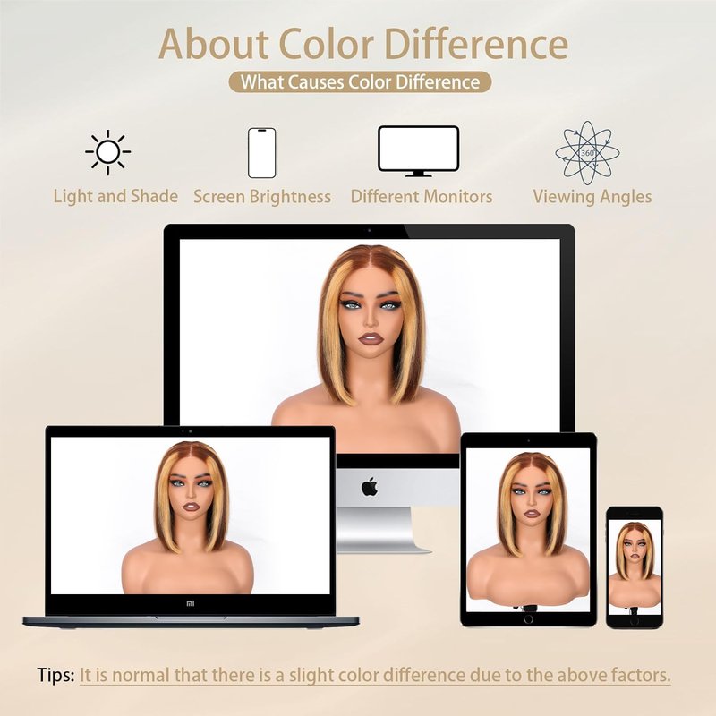 - Glueless Bob Wig Human Hair Details: 180% Density Looks Full & Thick Pre Plucked Ombre 4/27 Highlight Bob Lace Front Wig Average Cap Size(21.5-22.5inch) Fit for Most Women,With 4 Combs And 2 Adjustment Straps Easy To Adjust And Install,Breathable, Comfortable And Durable,Beginner Friendly