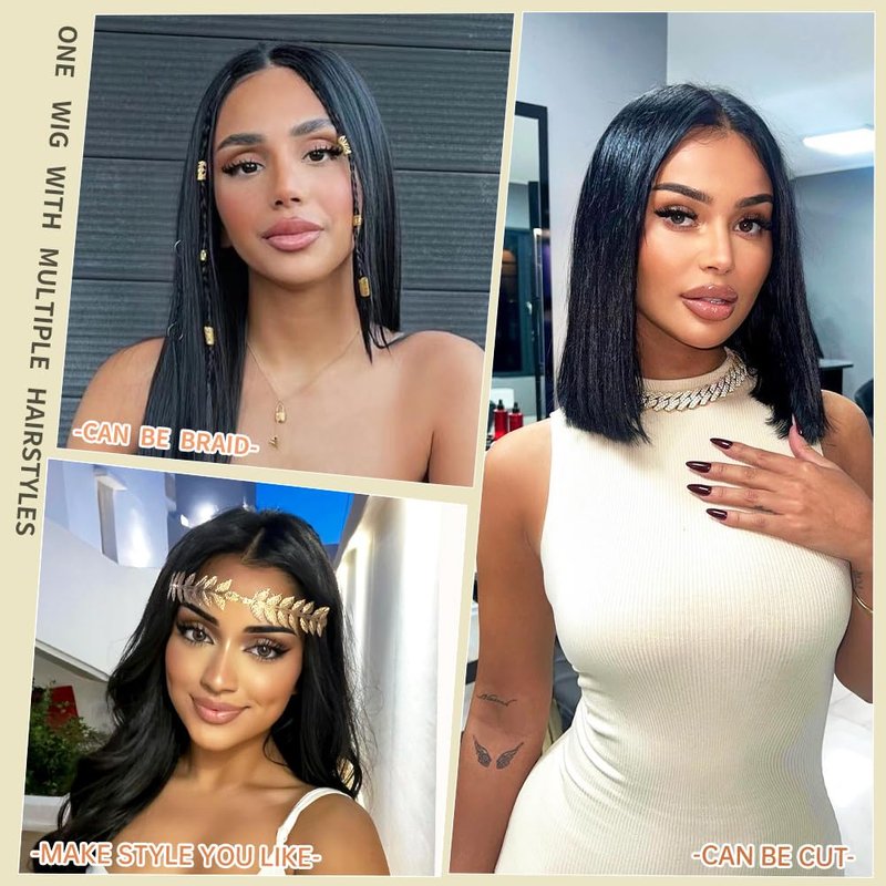 - 【Wear and Go Glueless Wig Material】 Glueless Wig Human Hair, 100% Upgraded Human Hair with New Technology, Donated by Young Girls in Brazil. It is Very Soft and Smooth, No Smell, Without Shedding Knots. It Can Be Dyed, Bleached, Permed, and Designed According to Your Preferences. Natural Black is Suitable for All Women.