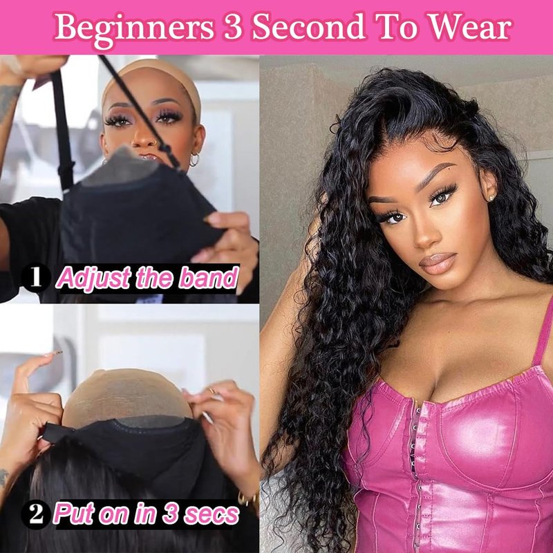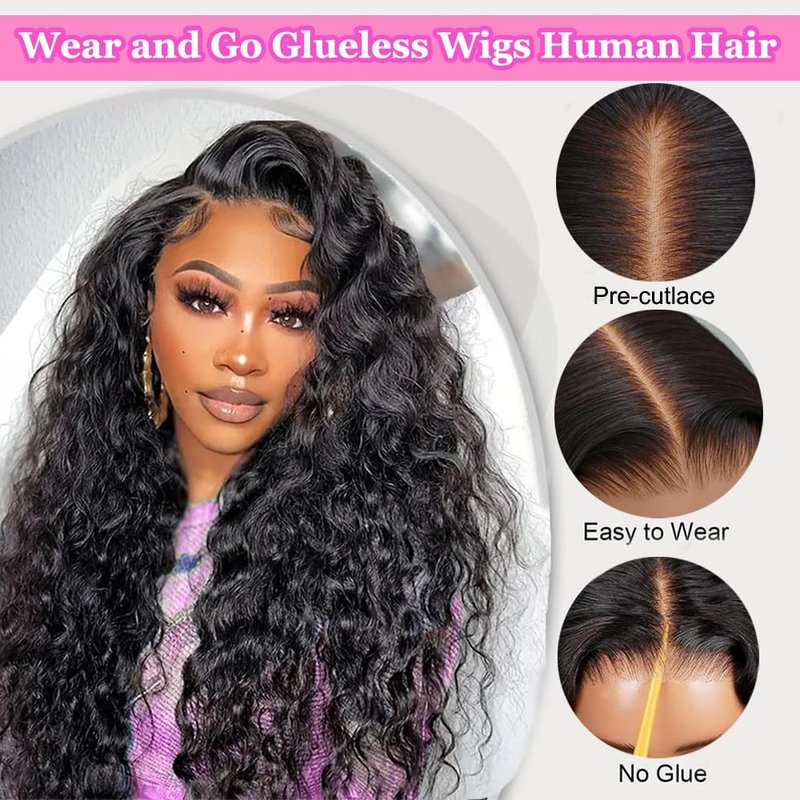 - 【Glueless Deep Wave Wigs Cap Size】:Wear and Go Glueless Wig, Medium Size (22-22.5 Inch), Removable Adjustable Elastic Band, with Anti-slip Strip, 4 Combs. Breathable And Elastic Cap.