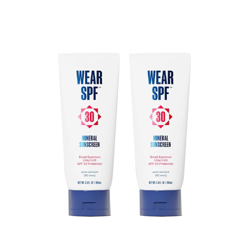 WearSPF Mineral Sunscreen SPF 30 Broad Spectrum Sun Lotion for Face and Body Antioxidant-Infused, Chemical-Free and Formulated with Zinc Oxide for Powerful UVA/UVB Protection, 2-pack