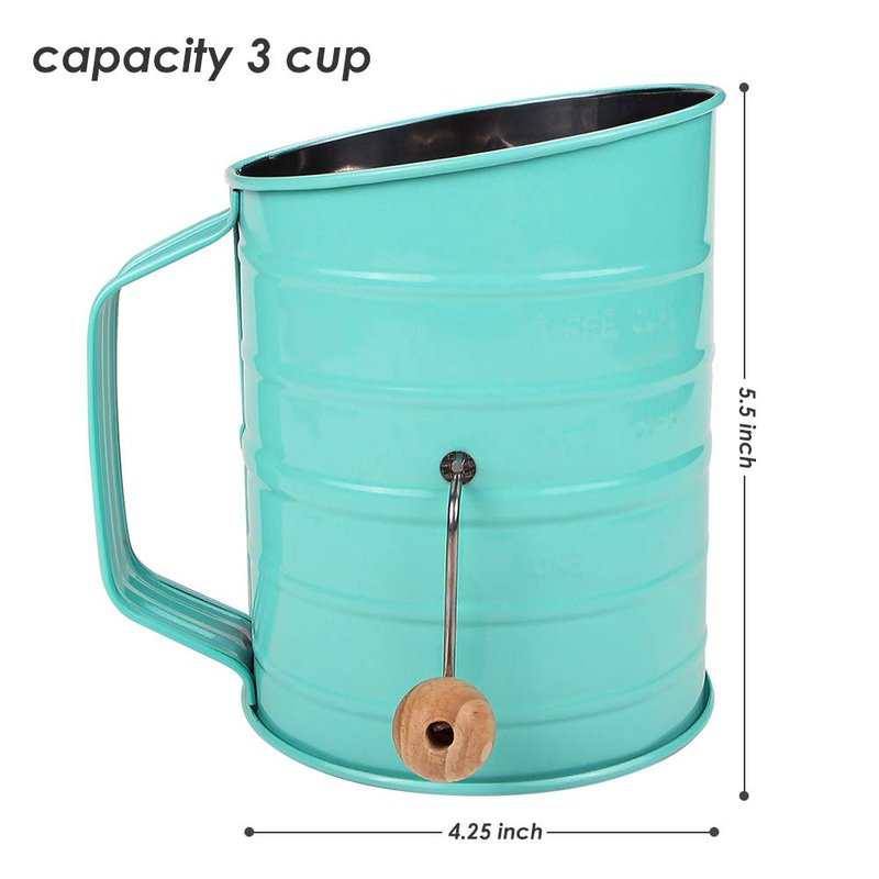 - GREAT BAKING TOOL - Webake hand crank flour sieve will help to break clumps and aerate flour and make your cakes/deserts a light and fluffy texture. The mint green color coated makes your baking and storage more stylish!
