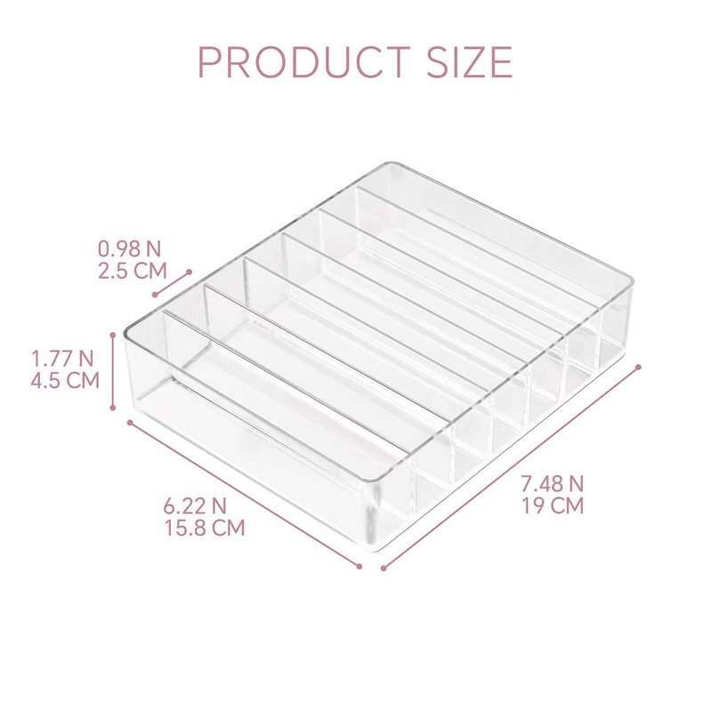 - 【7 Compartments Eyeshadow Palette Organizer】Good for eyeshadow palette and lipstick organizer, most sizes of palettes fit,great to use as a makeup drawer organizer and to hold your eyeshadow, makeup, etc, 7 Space Storage, transparent storages make you easy to find the one you need.