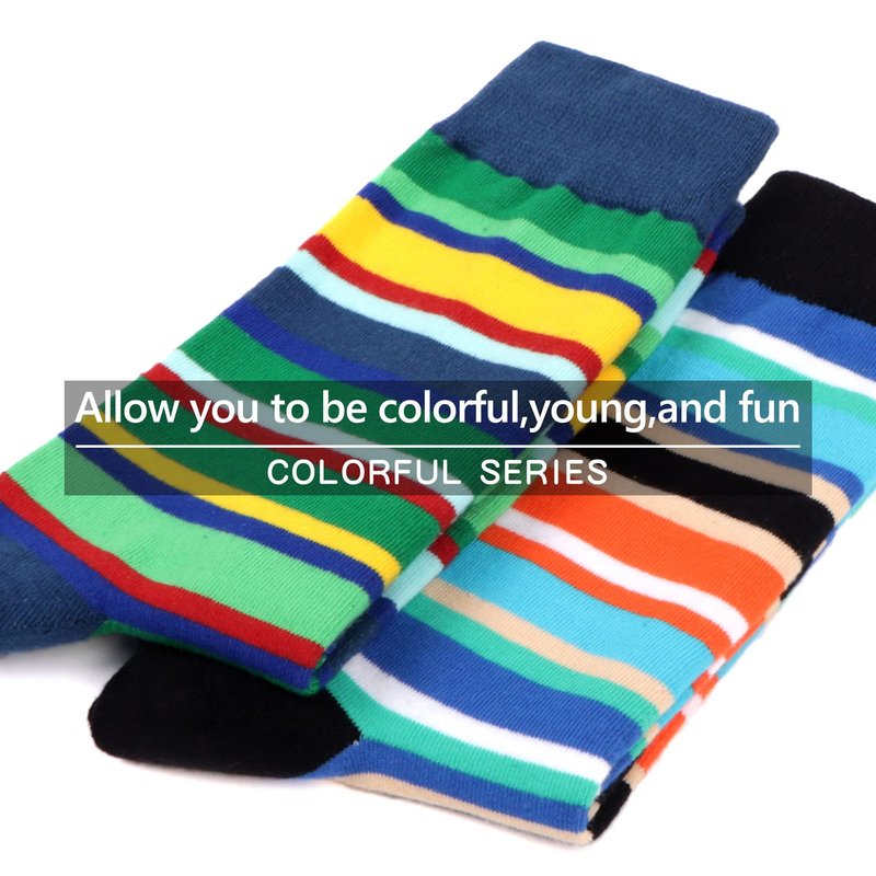 WeciBor Men's Dress Colorful Geometry Striped Casual Combed Cotton Crew Socks 12 Packs