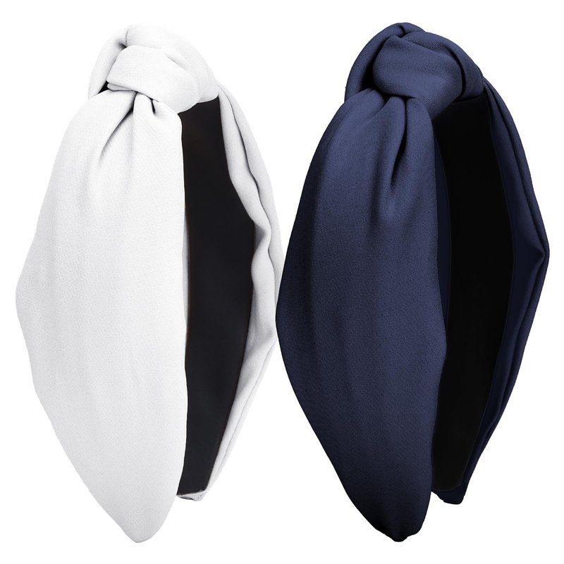 Wecoe 2 Pack Knotted Headbands For Women Navy Blue White Wide Headbands Hair Bands for Women's Hair Non Slip Fashion Cloth Headbands Hair Accessories For Women Girls Diademas Coreanas Para Mujer Gifts
