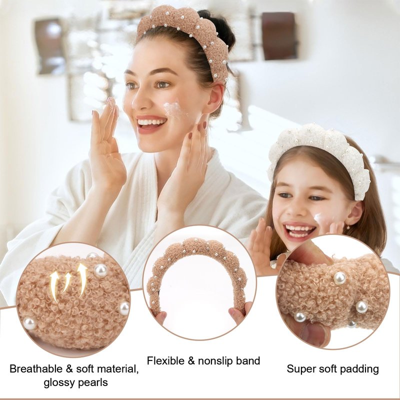 - Stylish & functional: with glossy pearls design, these makeup headbands in 2 colors are perfect for sharing with family and friends, and make a great gift for anyone who loves a good pampering session.