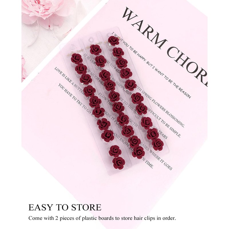 Wecoe 30 Pcs Small Dark Red Rose Flower Hair Clips Girls Tiny Mini Hair Clips Cute Decorative Hair Clips Kids Baby Toddler Wedding Hair Accessories Women Girls Valentine's Day Chirstmas Gift