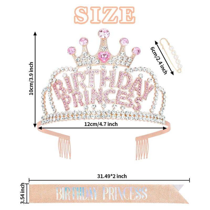 - Birthday Princess Crown: Look lovely on your special day with our cute birthday tiara and dazzling sash! Be the star of the crowd and complement any outfit with this stunning set. No matter how old you are, you will always be a lovely princess!