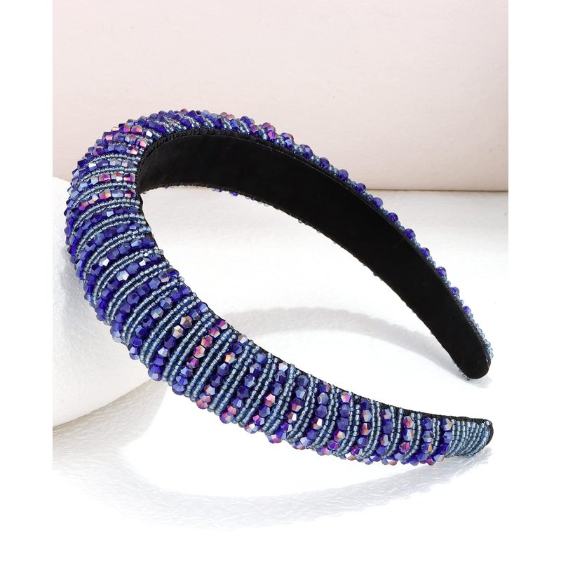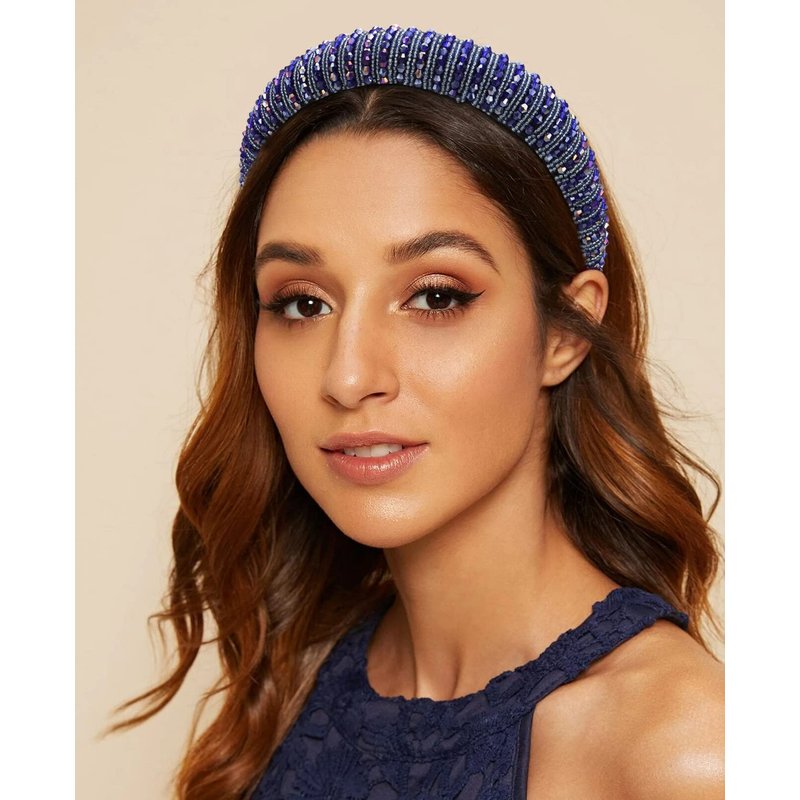 Wecoe Navy Blue Headband Fashion Rhinestone Headband Women Padded Headband Fancy Bling Diamond Sparkle Crystal Beaded Headband Cute Hair Band Holiday Hair Accessories For Women Girls Day Gifts