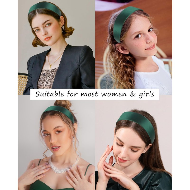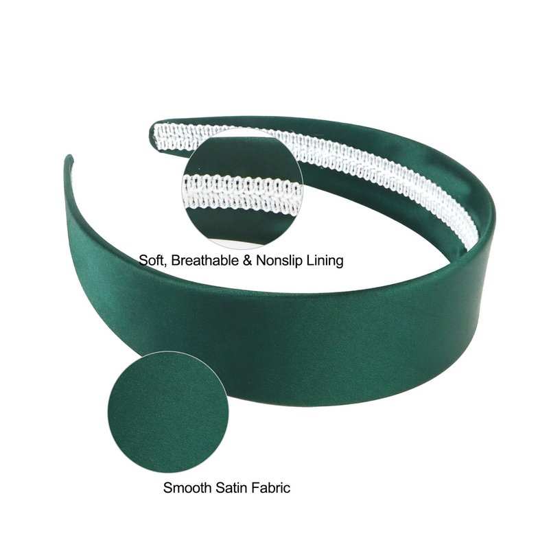 Wecoe Satin Headband Women 1.6 Inch Wide Silk Headband Dark Green Headband Non Slip Fashion Plain Head Band Solid Hair Band DIY Holiday Hair Accessories for Women Girls Diademas Para Mujer Gifts