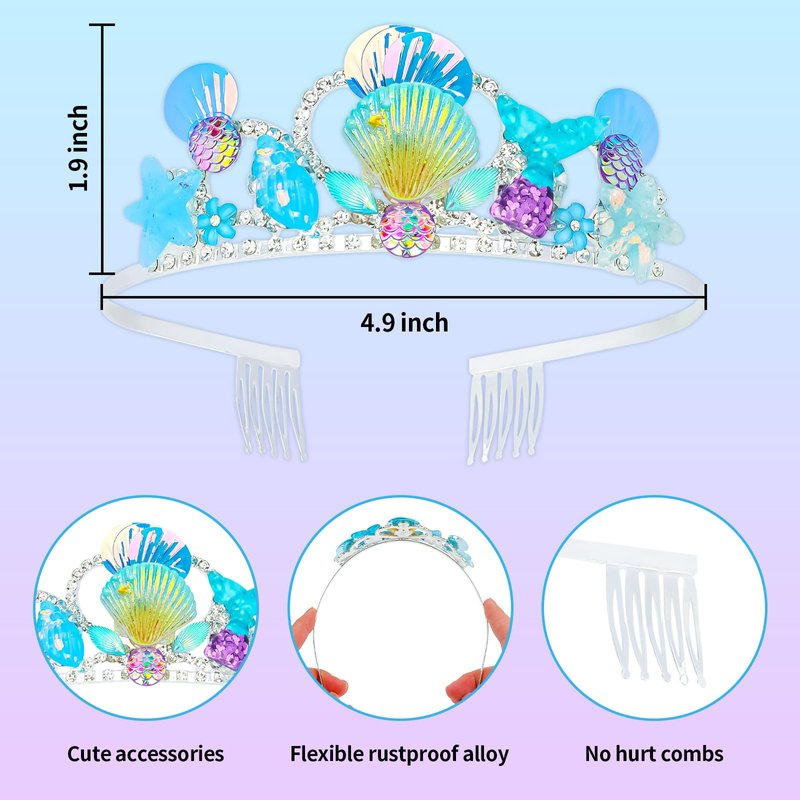 - Distinctive & vibrant design: This mermaid crown features an unique design with radiant colors and adorable little accessories that perfectly match with a mermaid-themed party. Transform any occasion into a magical under-the-sea adventure with this mermaid tiara. Elevate your mermaid-themed party or costume with our vibrant princess crown.