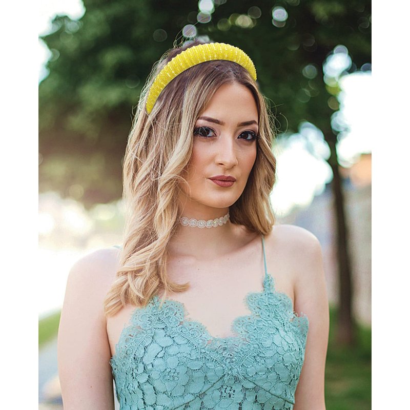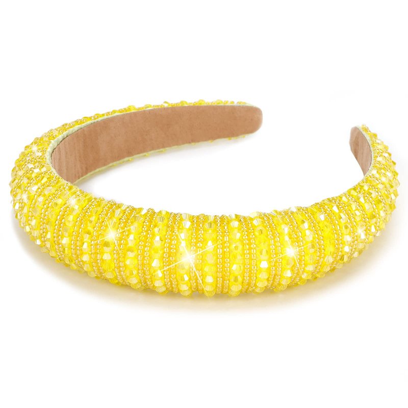 Wecoe Yellow Headband Fashion Rhinestone Headband Women Padded Headband Cute Fancy Bling Diamond Sparkle Crystal Beaded Headband Homecoming Prom Holiday Hair Accessories For Women Girls Birthday Gifts