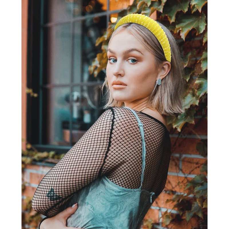 Wecoe Yellow Beaded Headband Rhinestone Headband back to school homcoming prom queen