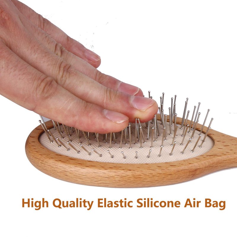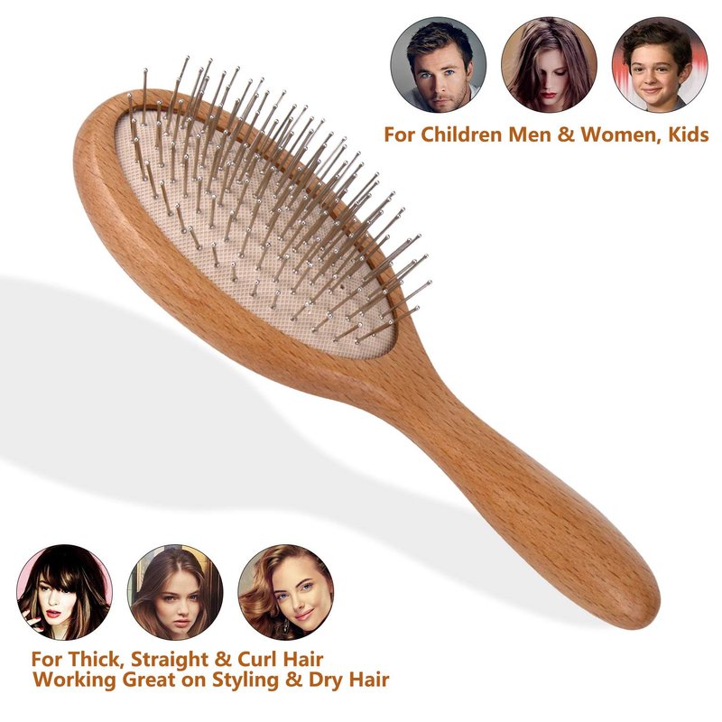 - ❤ Why Choose Us? Our unique wooden paddle hair brush with steel pins know your pain point of your hair brush / combs, can give you a solution to help you say Goodbye to rubber bed broke down, becoming misshapen, cracked, no good hold. Without any advertising on the handle