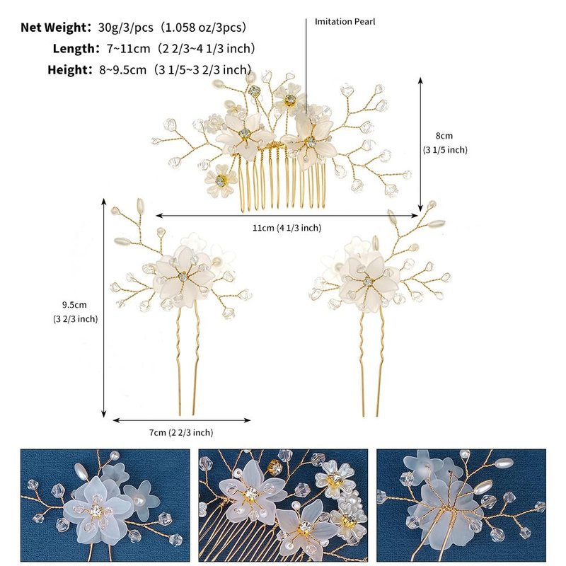 - ❀ELEGANT HAIR DECOR: This set includes a flower hair comb and two U-shaped hair pins decorated with imitation pearls, crystals and faux flowers perfect for adding beauty and charm on your special wedding day.
