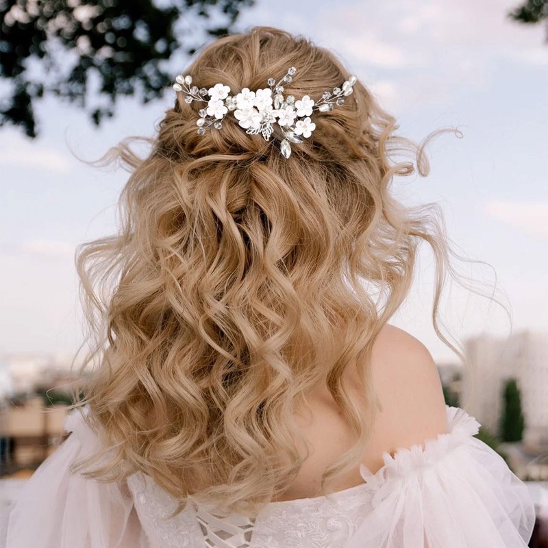 - Premium Materials: Exquisite pearls, shimmering diamond-like rhinestones, white flowers and finely crafted alloy wire – a blend of elegance for timeless hair accessories for women wedding.