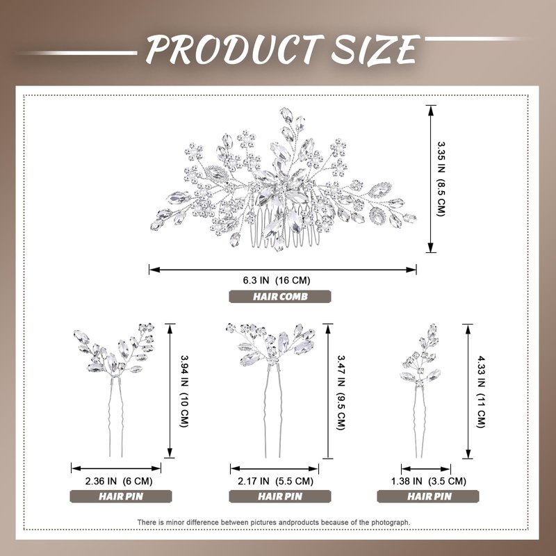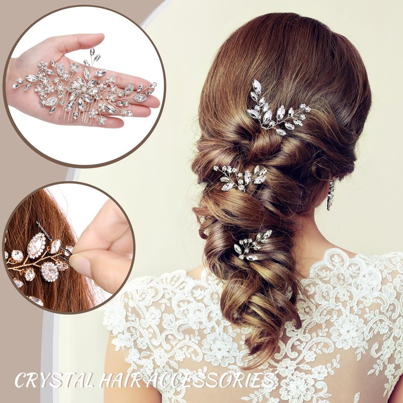 - 【WEDDING HAIR PIEC SETS】This set includes one crystal hair comb and three crystal hairpins. Can be used individually or together as a set, Versatile mix and match. Also includes two hair clips as a gift, which are convenient for securing the hairstyle.